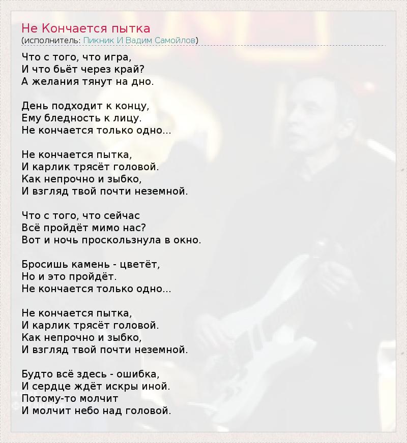 А как ты думаешь, о чем песня "Не Кончается пытка" ?