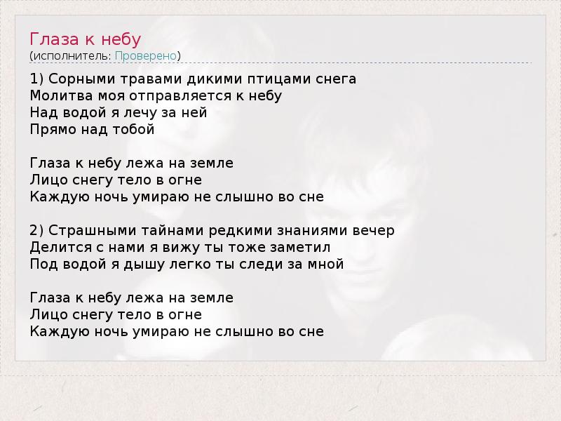 А как ты думаешь, о чем песня "Глаза к небу" ?