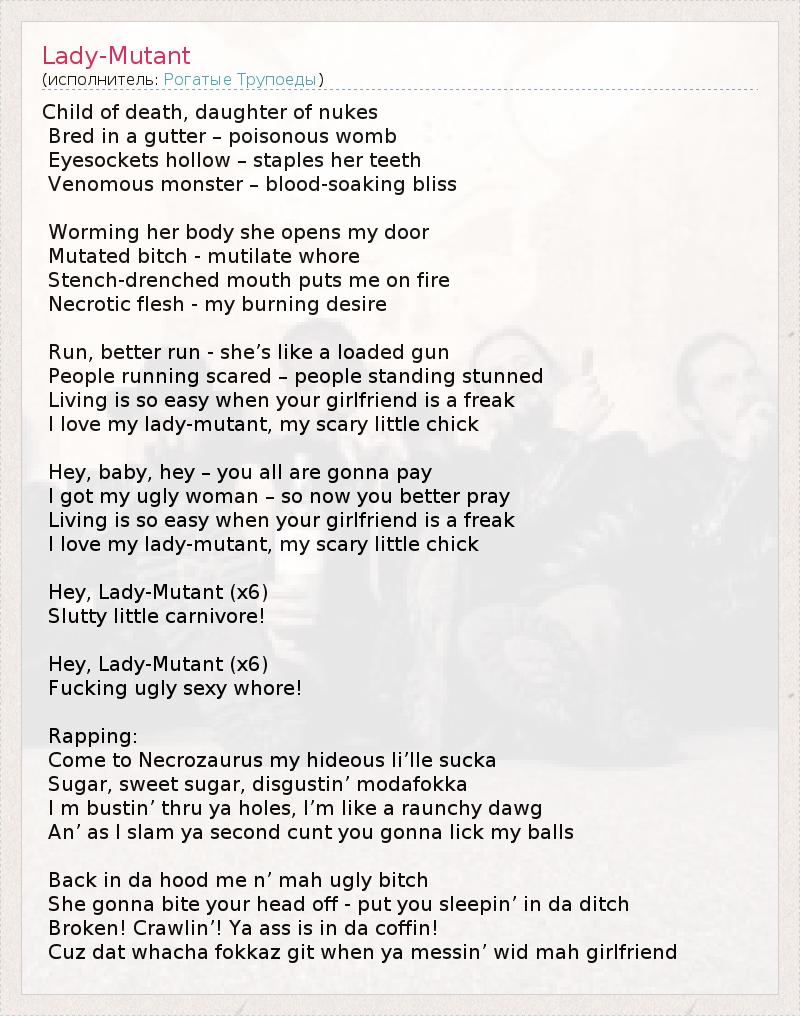 А как ты думаешь, о чем песня "Lady-Mutant" ?