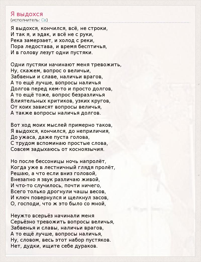 А как ты думаешь, о чем песня "Я выдохся" ?