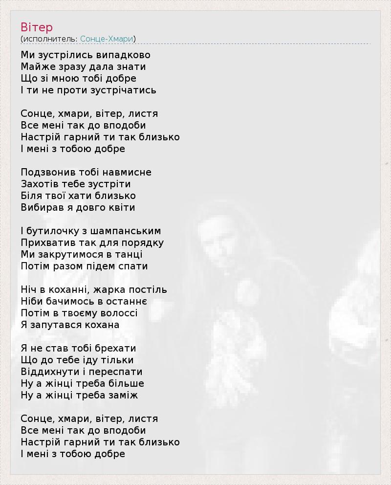 А как ты думаешь, о чем песня "Вітер" ?
