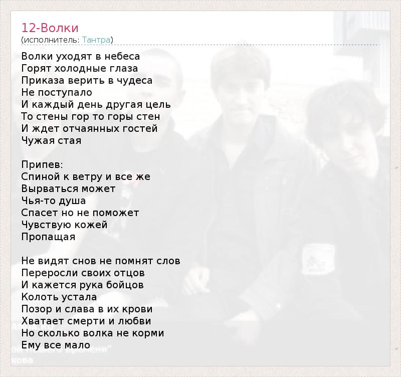 Это интересно:Пресс-релизТАНТРАВ рамках пятилетия , группа ТАНТРА объявила о релизе нового сингла , под названием “Северный ветер”, в него вошли три песни с нового альбома , запись которого идет полным ходом .Сергей Барабанов:“Мы пишем новый альбом ,по мере возможности ,рабочее название -”Калипсо”, в него войдут песни , которые известны слушателю по нашим выступлениям, а также совершенно... продолжение