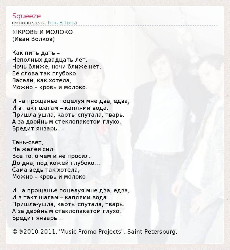 Молодая питерская рок-группа «Точь-в-Точь» представляет дебютный альбом «Кровь и молоко». Релиз диска состоится в мае 2011 года на лейбле «MusicPromoProjects».