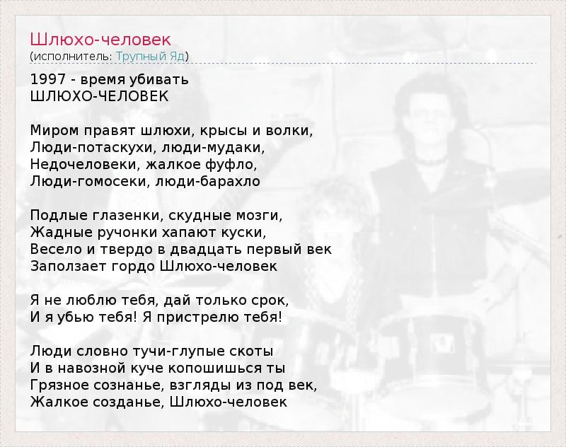 А как ты думаешь, о чем песня "Шлюхо-человек" ?