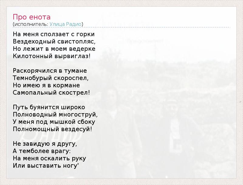 А как ты думаешь, о чем песня "Про енота" ?