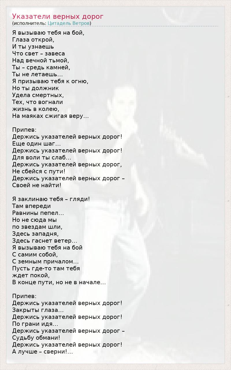 А как ты думаешь, о чем песня "Указатели верных дорог" ?