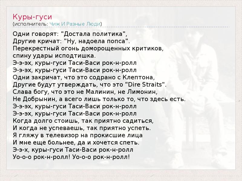 Э-э-х, куры-гуси Таси-Васи рок-н-ролл