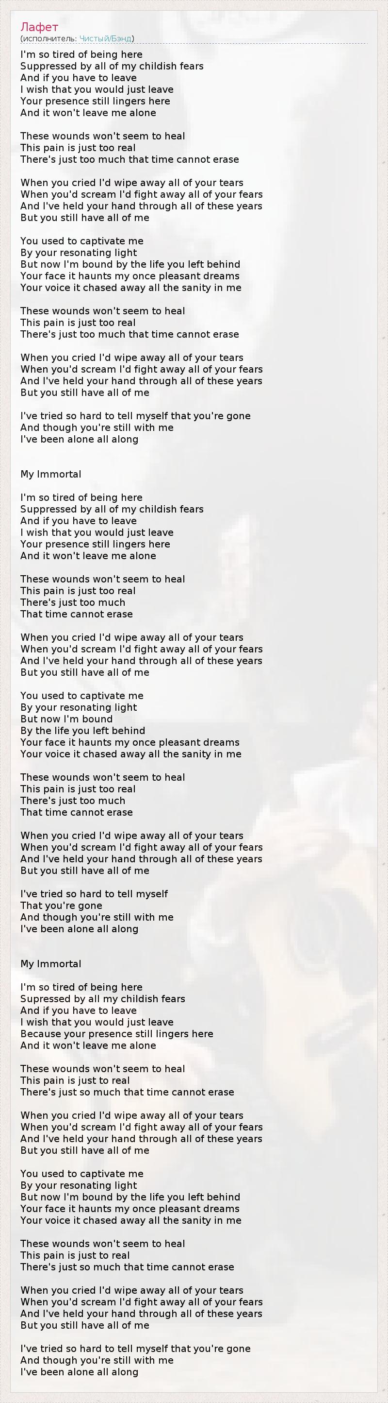Мой бессмертный (перевод Ксении Деулиной из Екатеринбурга)