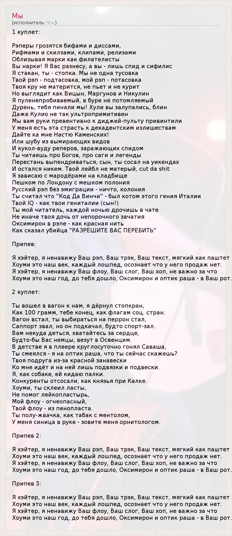 Я хэйтер, я ненавижу Ваш рэп, Ваш трэк, Ваш текст, мягкий как паштет