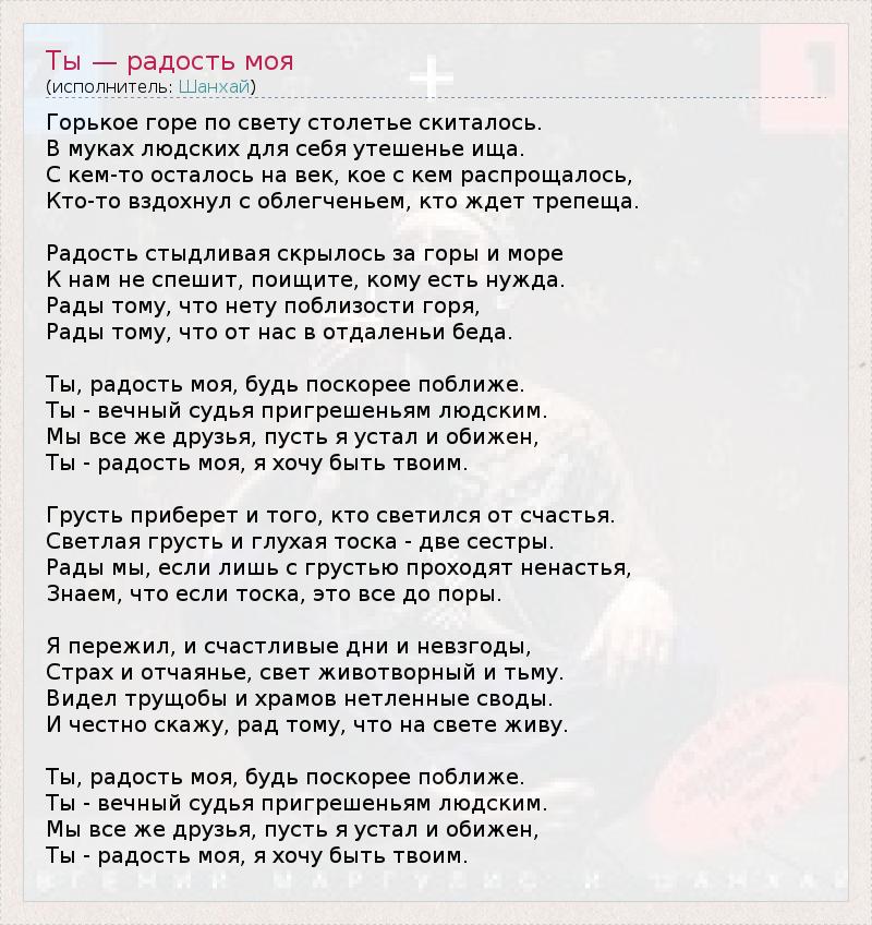 ГлавнаяИсполнителиШанхайТы — радость моя