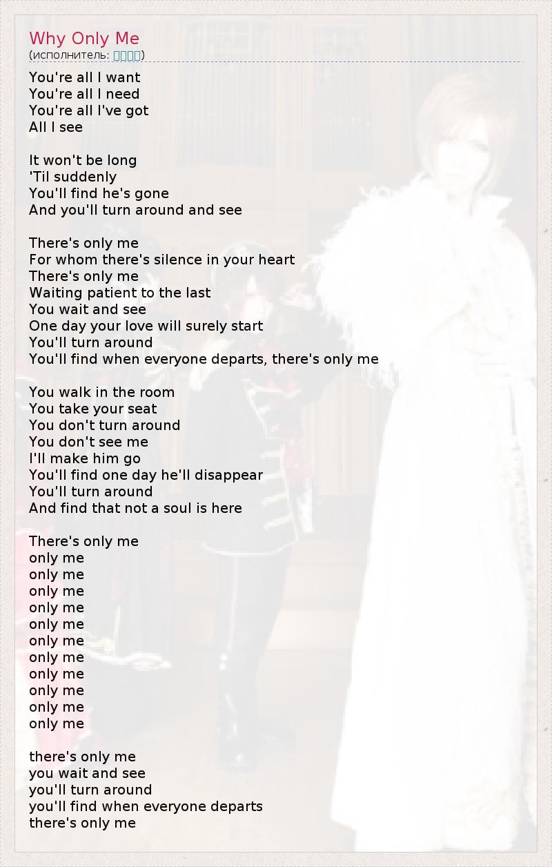 А как ты думаешь, о чем песня "Why Only Me" ?