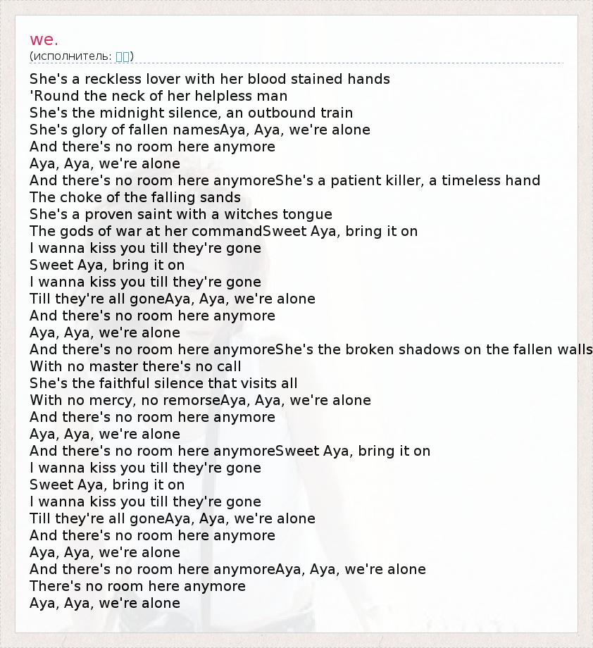 And there's no room here anymoreShe's a patient killer, a timeless hand