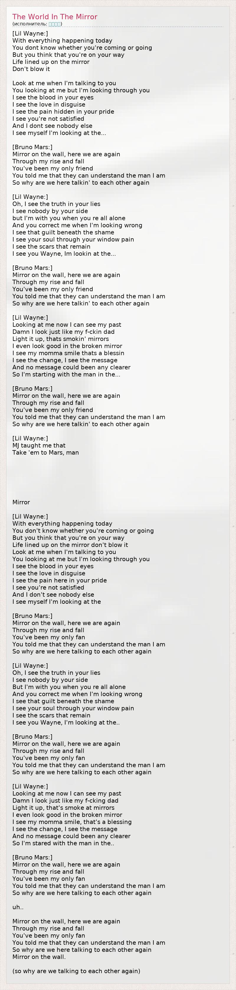 А как ты думаешь, о чем песня "The World In The Mirror" ?