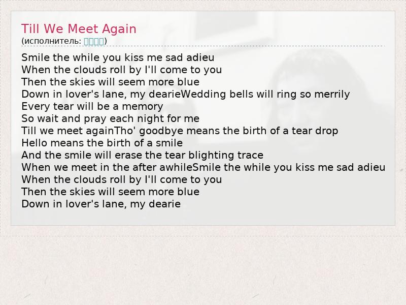 А как ты думаешь, о чем песня "Till We Meet Again" ?