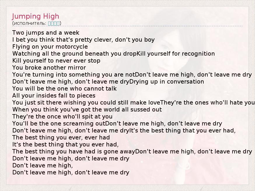 The best thing you have had is gone awayDon't leave me high, don't leave me dry