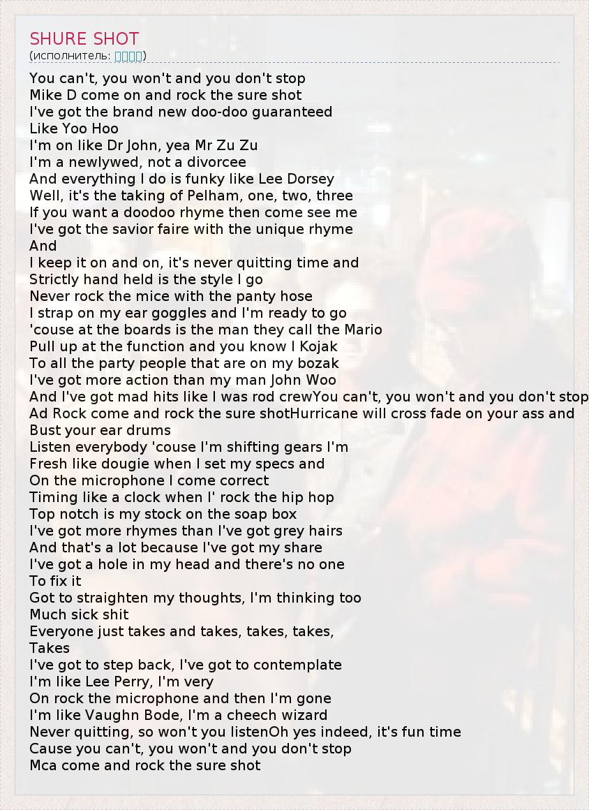 А как ты думаешь, о чем песня "SHURE SHOT" ?