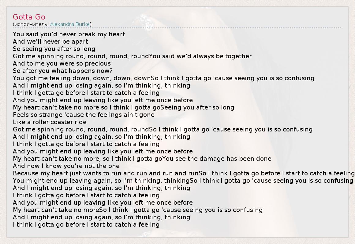 А как ты думаешь, о чем песня "Gotta Go" ?