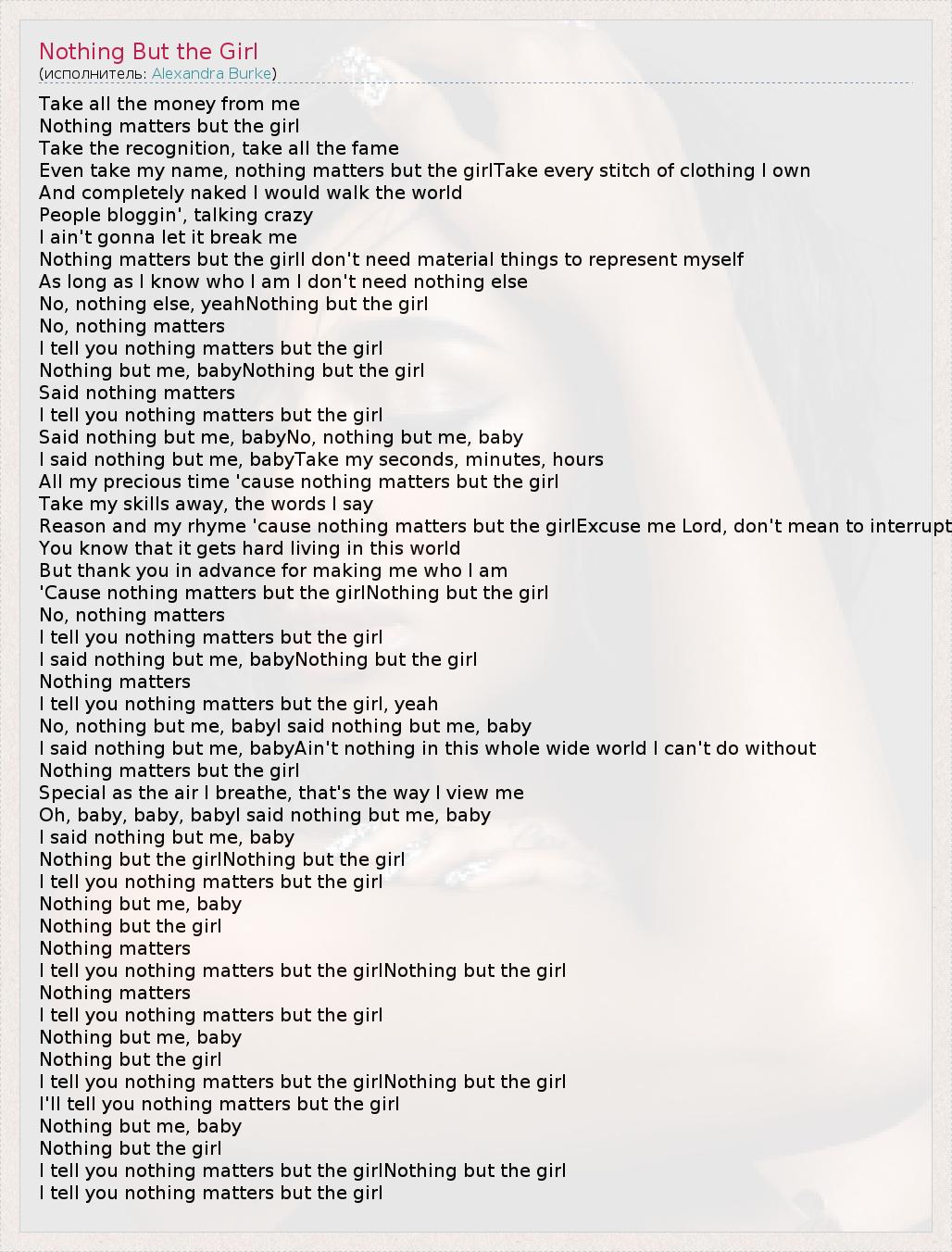 А как ты думаешь, о чем песня "Nothing But the Girl" ?
