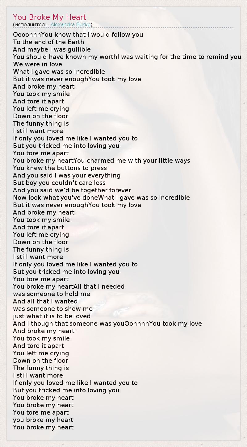 А как ты думаешь, о чем песня "You Broke My Heart" ?