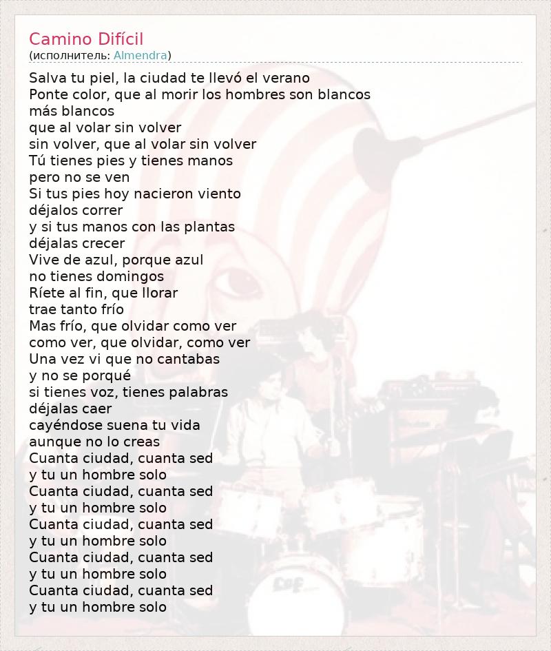 А как ты думаешь, о чем песня "Camino Difícil" ?