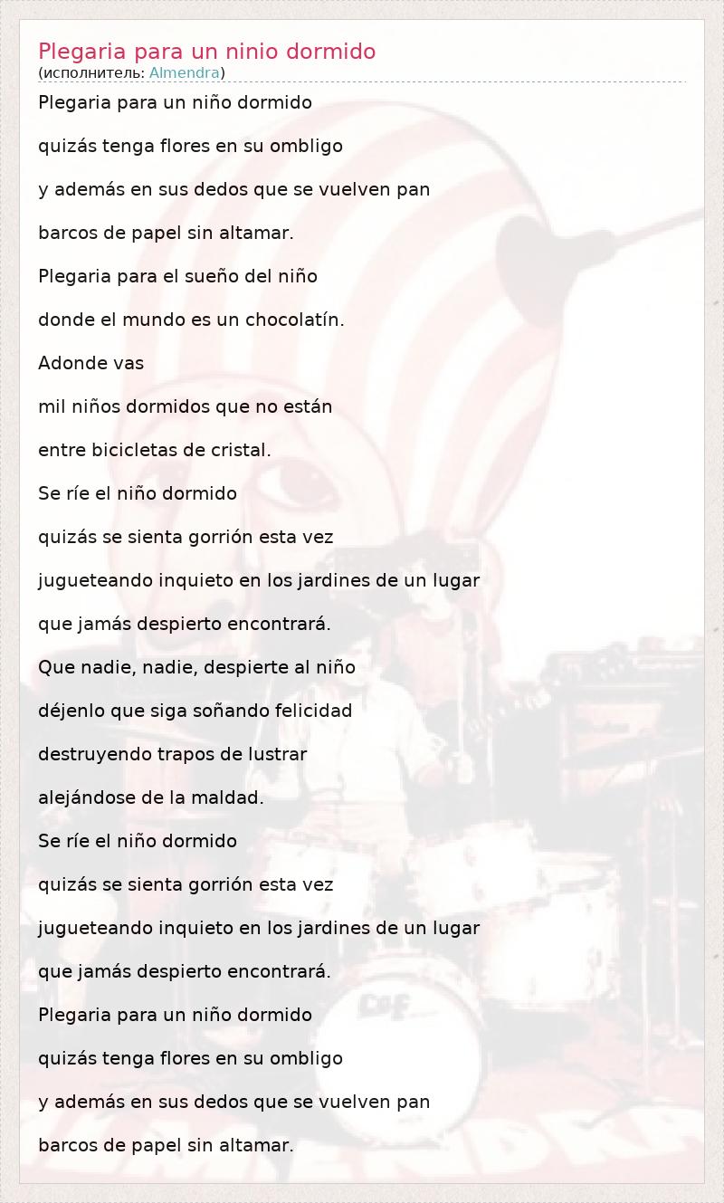 ГлавнаяИсполнителиAlmendraPlegaria para un ninio dormido