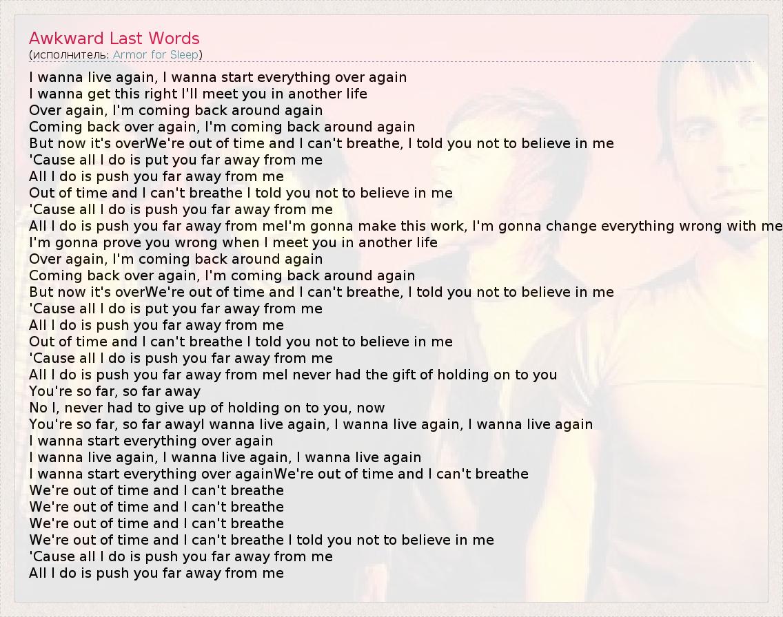А как ты думаешь, о чем песня "Awkward Last Words" ?