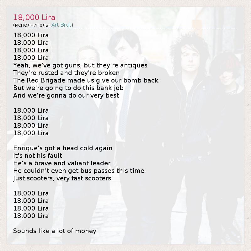 А как ты думаешь, о чем песня "18,000 Lira" ?