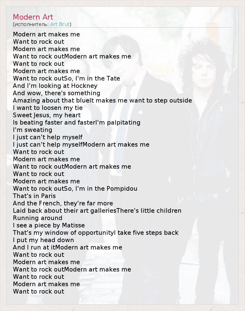 Это интересно:"Мы создали группу! Смотрите, мы создали группу!" - с таким кличем в 2003 году обратилась к соотечественникам британские инди-рокеры Art Brut. Их дебютный сингл "Formed a Band", звучавший так, словно был написан за десять минут, заявил о появлении остроумной, энергичной, неунывающей команды, с которой никогда не бывает скучно и которая собирается "написать песню, универсальную, как день... продолжение