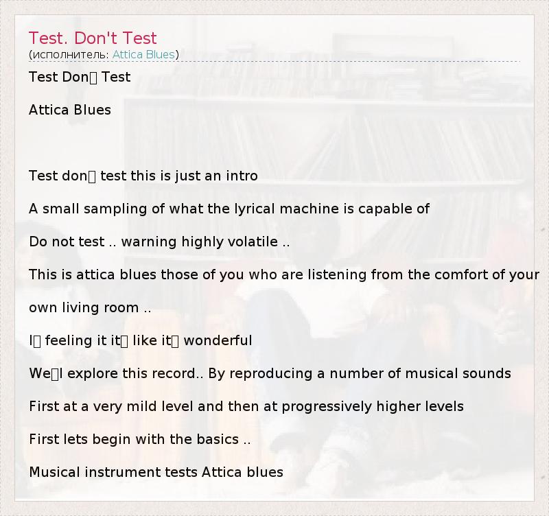 А как ты думаешь, о чем песня "Test. Don't Test" ?