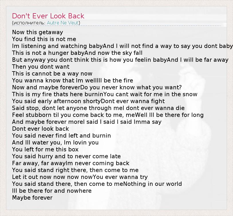 А как ты думаешь, о чем песня "Don't Ever Look Back" ?