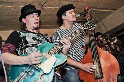 Это интересно: Донецкая ска-били, блюз банда о пяти человеках и одном контрабасе.Банда сбилась в кучку 11 октября 2008 года и коллапсируя аки ежи в тумане начали играть музыку, сами того не подозревая. Спустя месяц, наконец таки обзавелись инструментами. 11 ноября 2008 года, перестав играть "в наушник" и первый раз "сыграв в колонках" на публике в Gung'Ю'бazz Bar, вняли голосам свыше и убавили громкость, но не пыл!15 апреля 2011 года, по прошествии более двух лет музыкальных стараний, скитаний и выступлений, выходит первый студийный альбом группы "Ищи Дурака".
