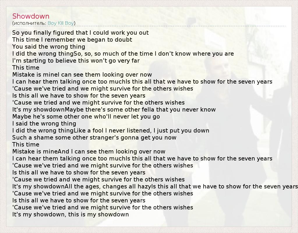 It's my showdownAll the ages, changes all hazyIs this all that we have to show for the seven years