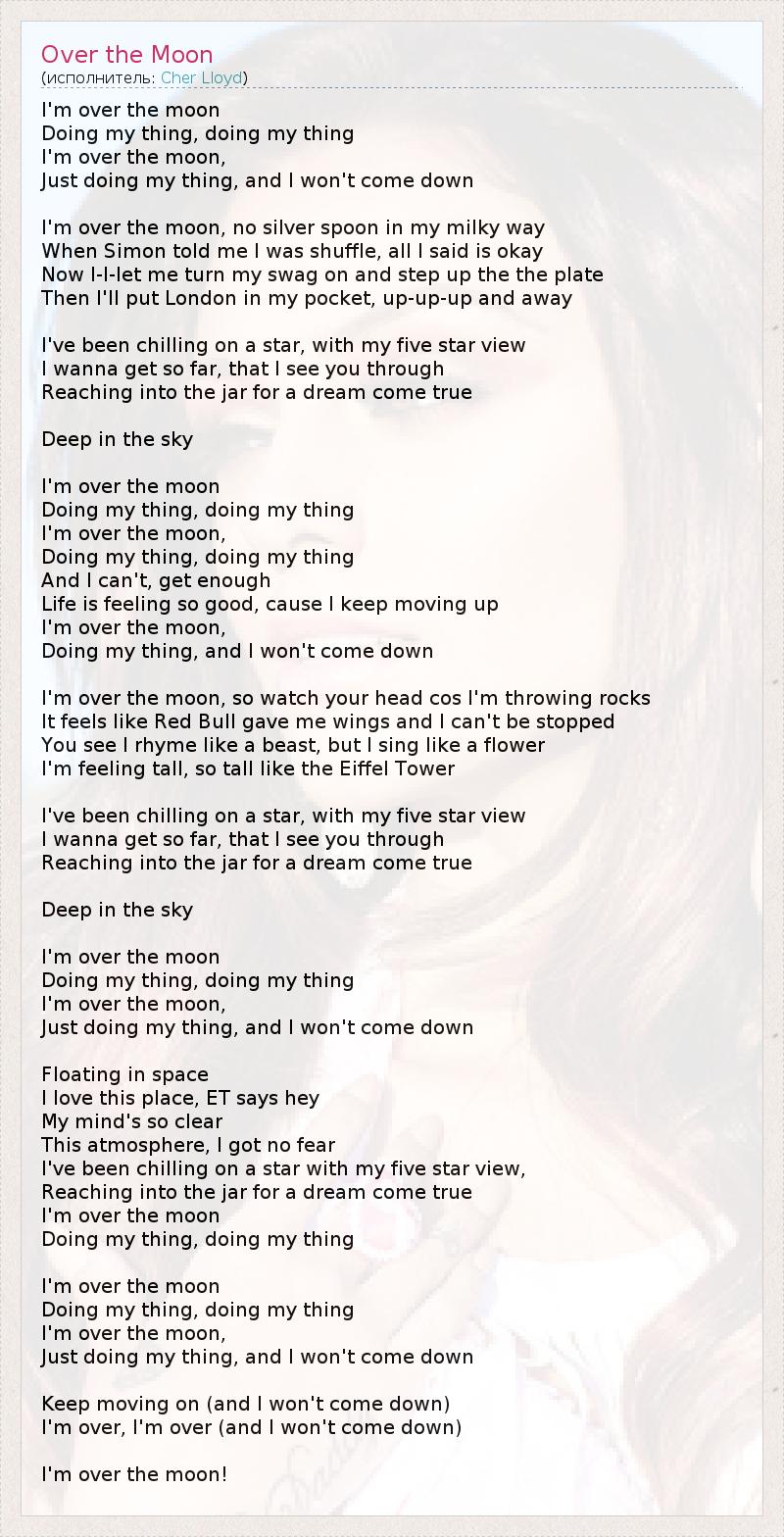 А как ты думаешь, о чем песня "Over the Moon" ?