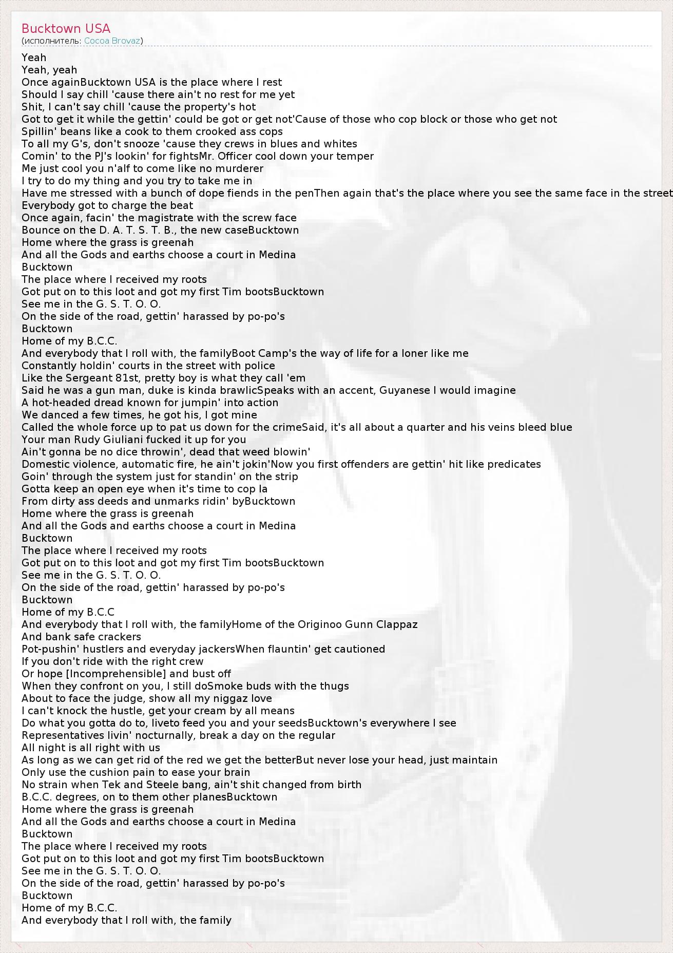 А как ты думаешь, о чем песня "Bucktown USA" ?