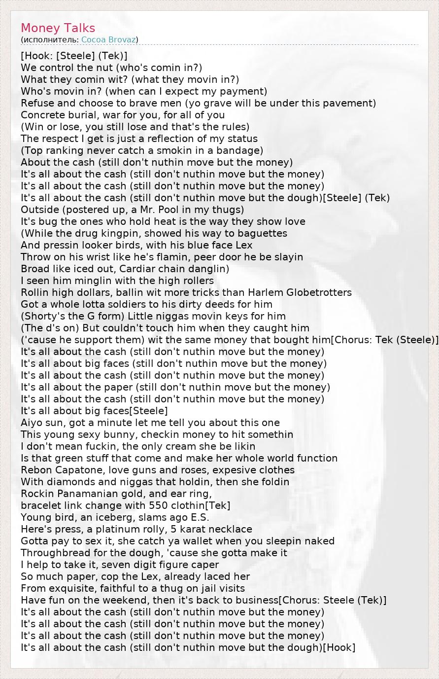 It's all about the cash (still don't nuthin move but the dough)[Steele] (Tek)
