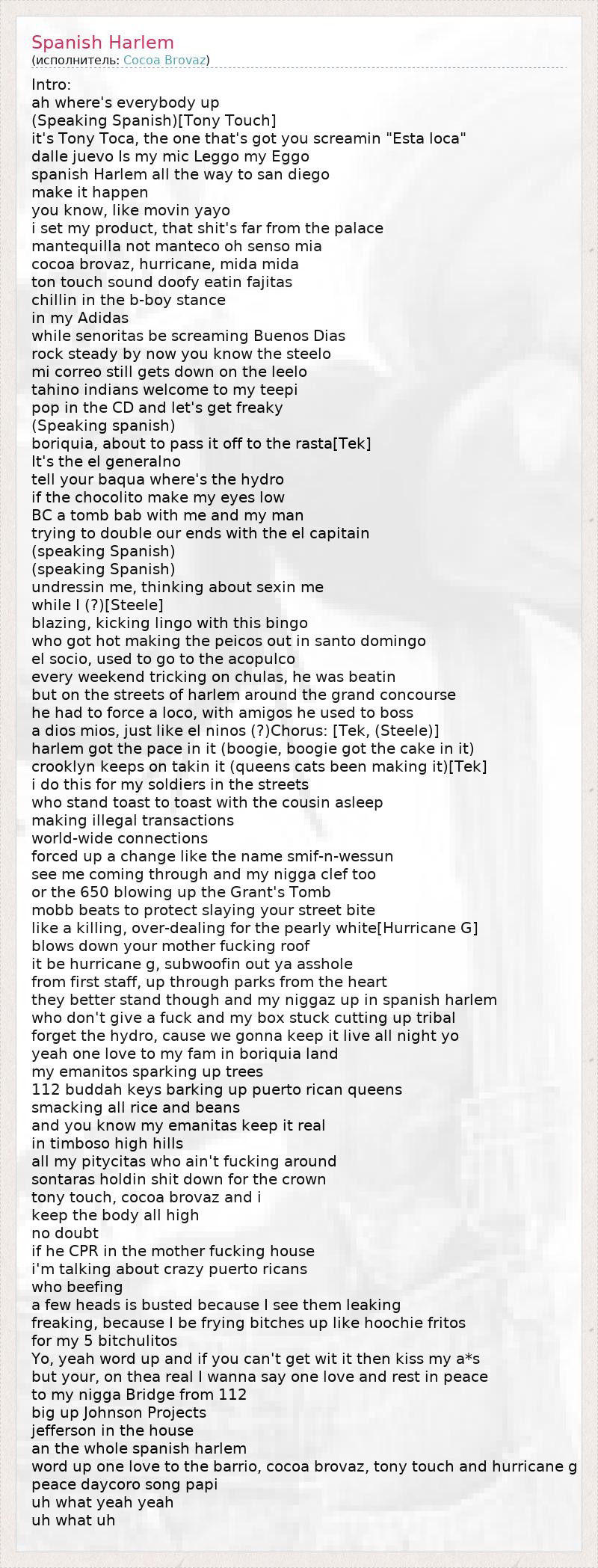 А как ты думаешь, о чем песня "Spanish Harlem" ?