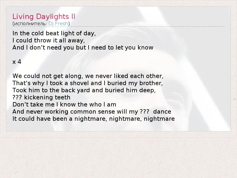 А как ты думаешь, о чем песня "Living Daylights II" ?