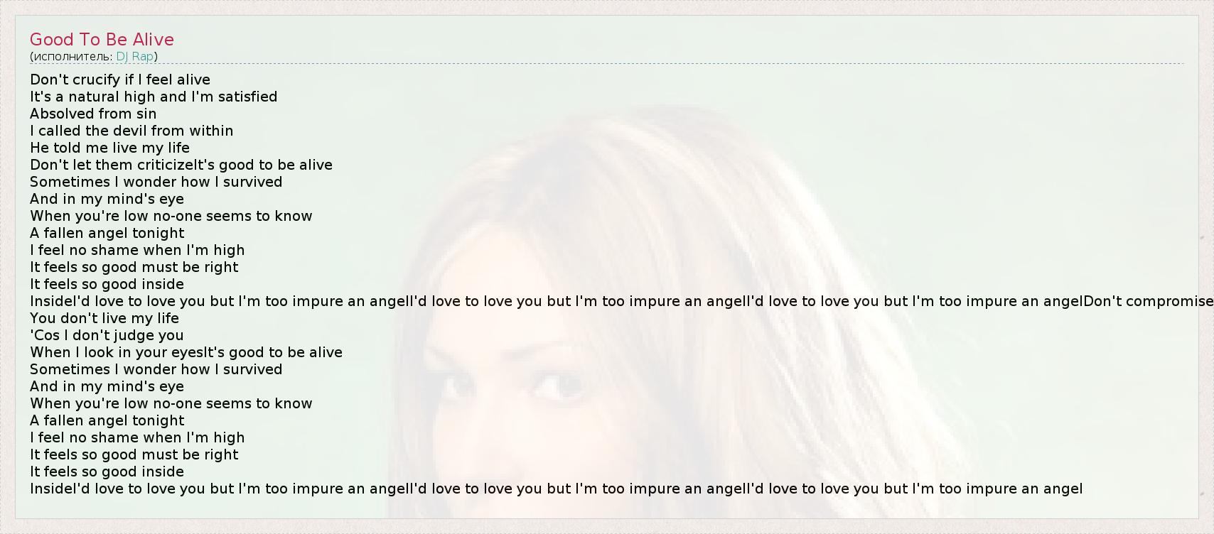 А как ты думаешь, о чем песня "Good To Be Alive" ?