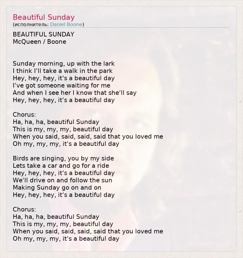 А как ты думаешь, о чем песня "Beautiful Sunday" ?