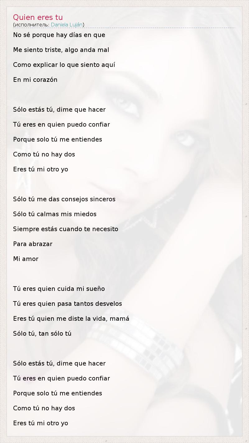 А как ты думаешь, о чем песня "Quien eres tu" ?