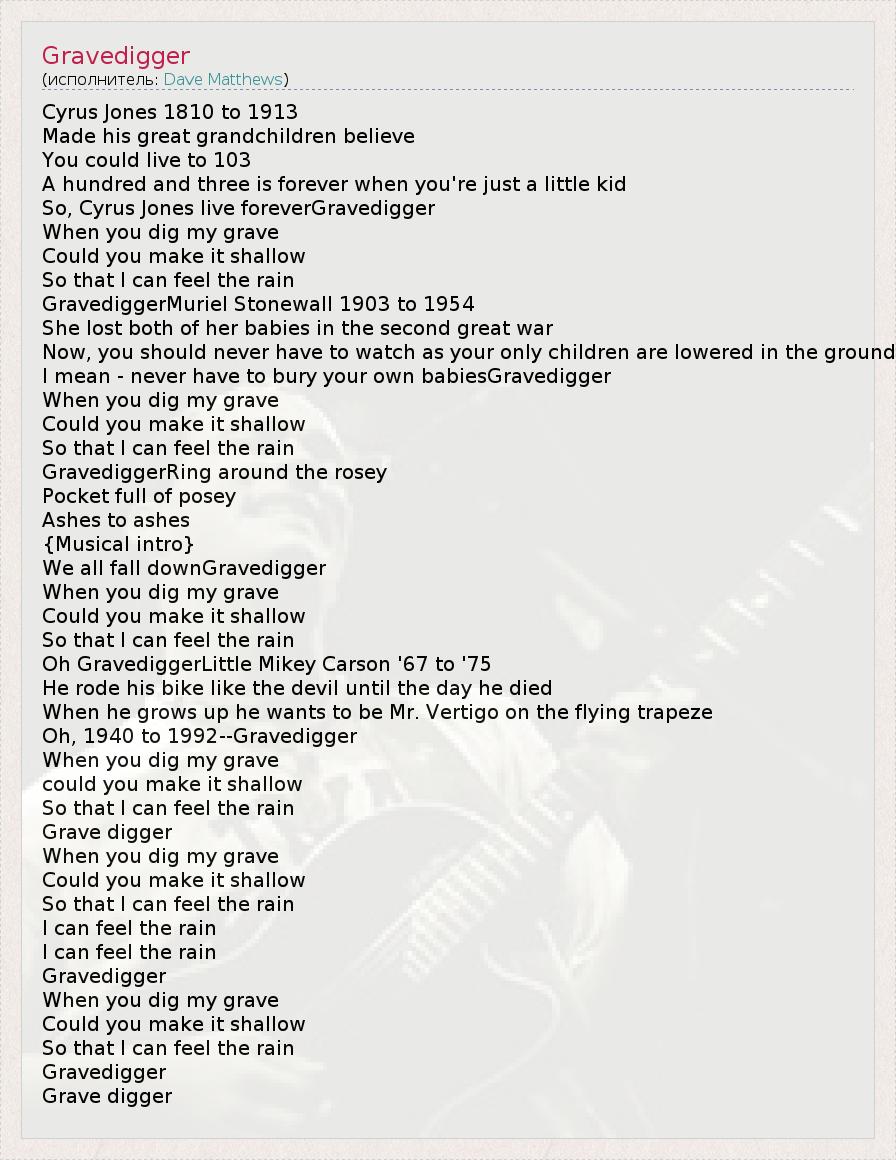 А как ты думаешь, о чем песня "Gravedigger" ?