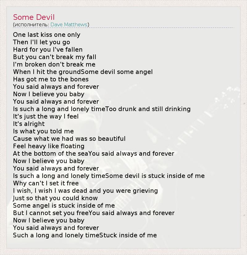 Это интересно:Дэйв Мэтьюс (Dave Matthews, род. 9 января 1967 г.) — южноафриканский рок-гитарист и исполнитель, который создал в 1991 году американскую рок-группу Dave Matthews Band. Своими неустанными концертными турами по США Дэйв и его товарищи привлекли в свой стан немало преданных поклонников. Они играют поп-ориентированную разновидность рок-музыки, которая — по образцу Grateful Dead — открыта самым разнообразным музыкальным... продолжение