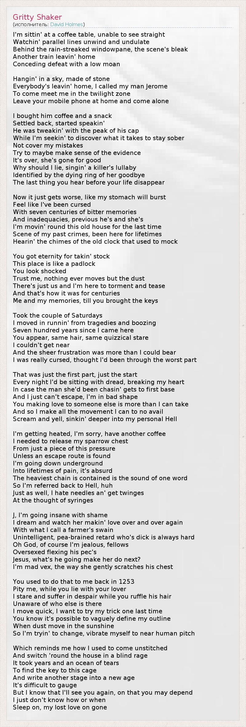 А как ты думаешь, о чем песня "Gritty Shaker" ?