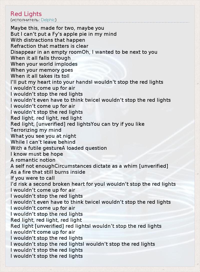 А как ты думаешь, о чем песня "Red Lights" ?