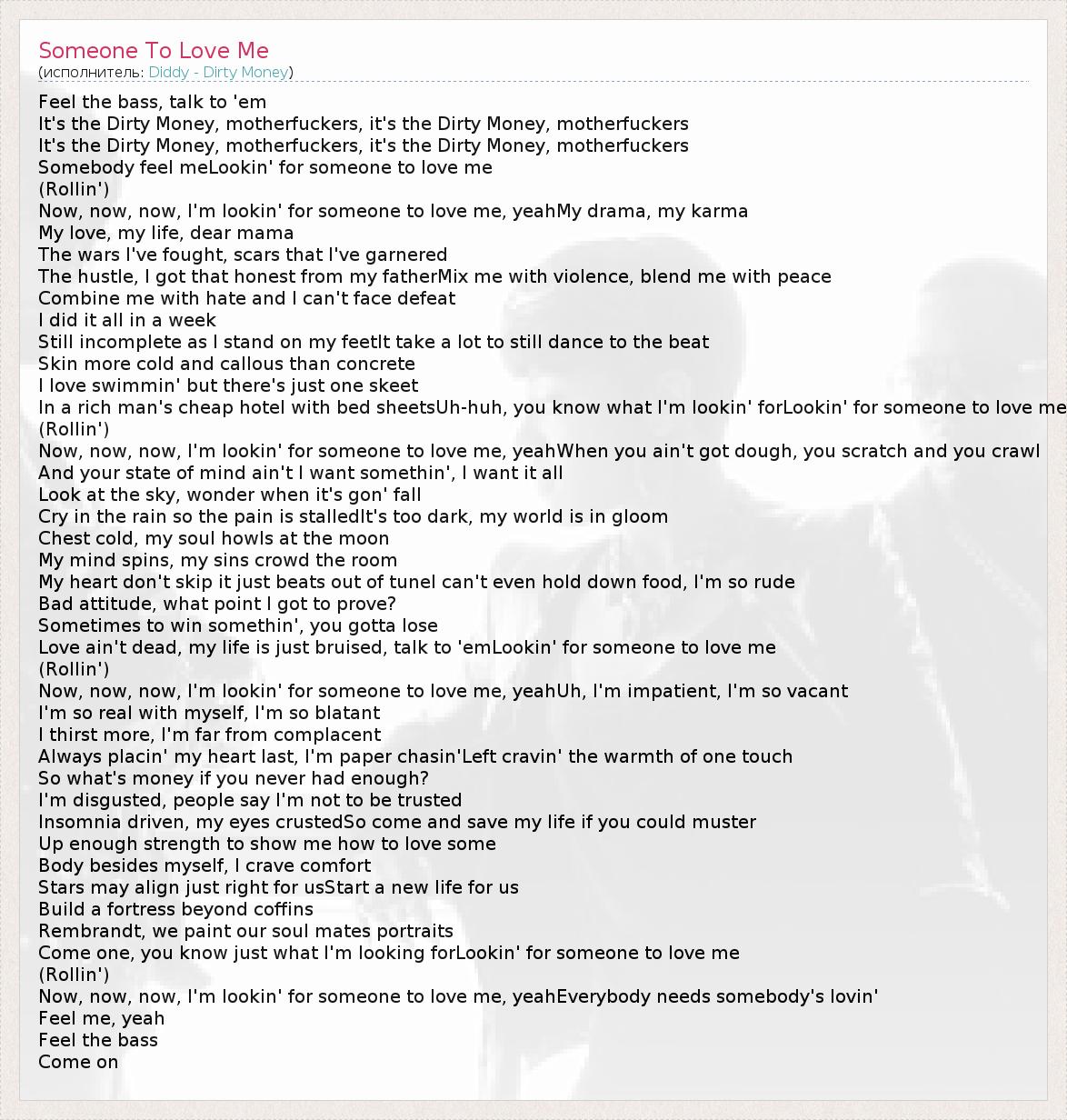 А как ты думаешь, о чем песня "Someone To Love Me" ?