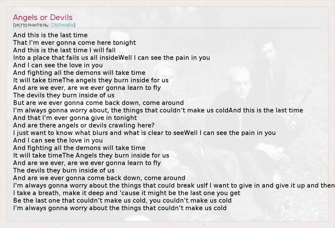 А как ты думаешь, о чем песня "Angels or Devils" ?