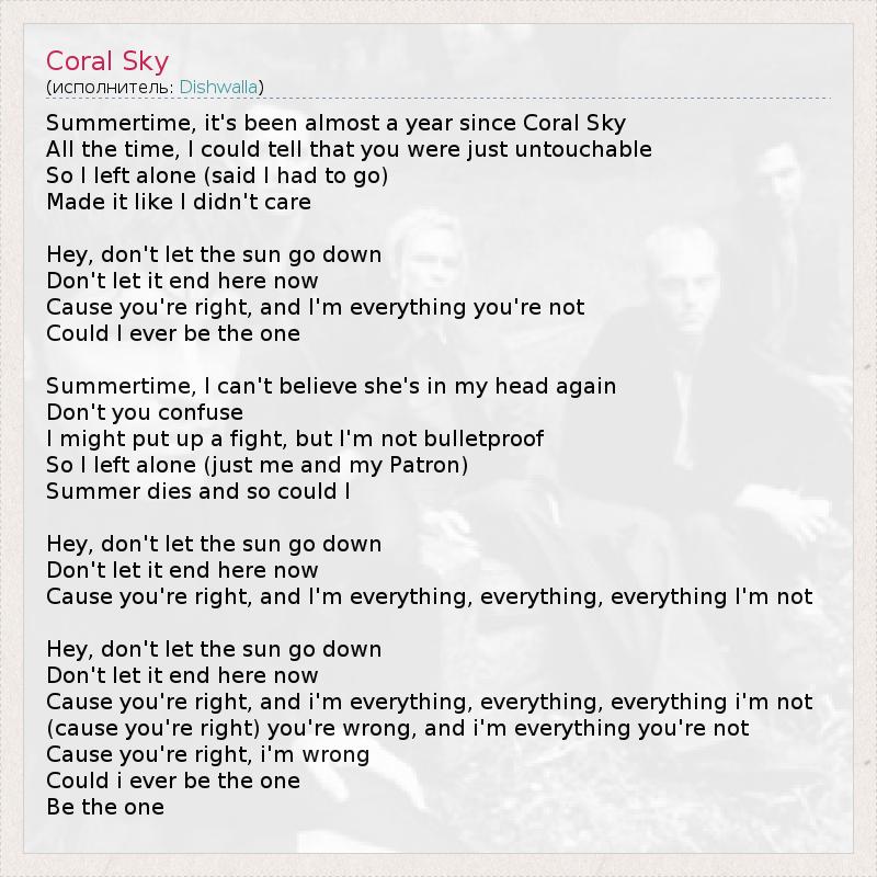 А как ты думаешь, о чем песня "Coral Sky" ?