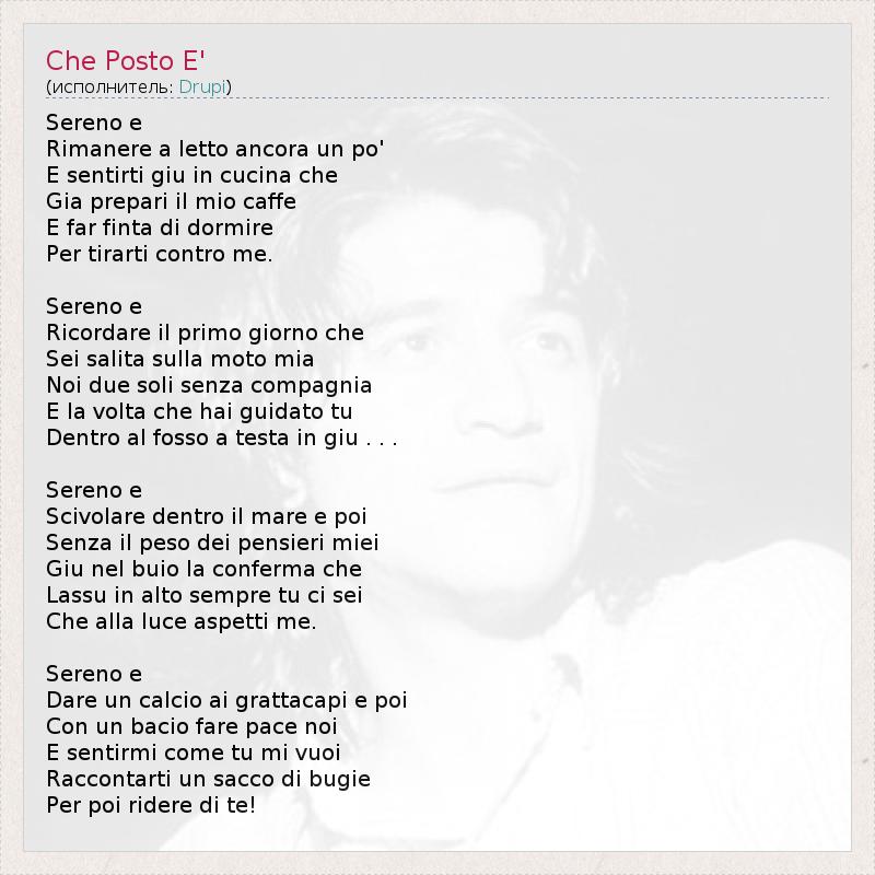 А как ты думаешь, о чем песня "Che Posto E'" ?