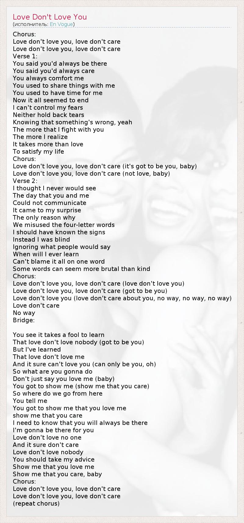 А как ты думаешь, о чем песня "Love Don't Love You" ?