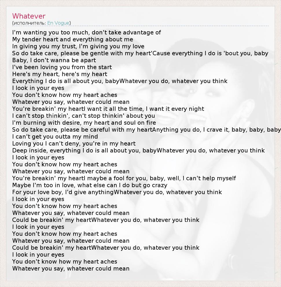 Deep inside, everything I do is all about you, babyWhatever you do, whatever you think